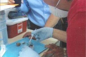 La extracción fue hecha en condiciones asépticas estrictas por el director del laboratorio, el doctor Gilberto Aponte Machín, (izquierda,) para evitar la contaminación.